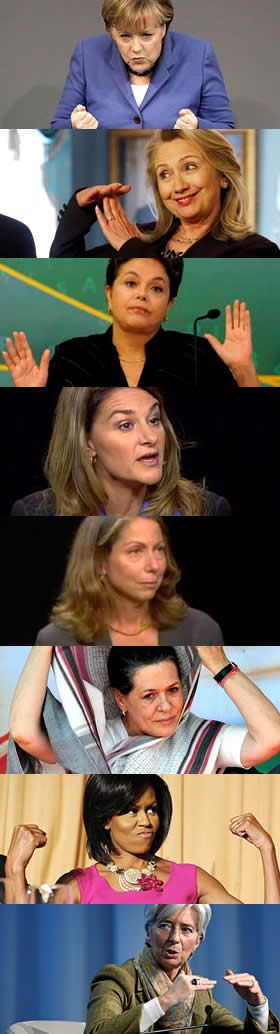 No tengo que estar en todo de acuerdo con Angela Merkel para darme cuenta y reconocerle que el lugar que ocupa es muy importante para el mundo. La prueba esta que quienes la siguieron se salvaron y los que tomaron otro rumbo se hundieron. Las que vienen después en la lista salvo Dilma de brasil o alguna otra mas abajo,no coincido que tengan tanta influencia a no ser por sus padres o maridos y a Christine (FMI), todos saben que la ponen porque el francés tuvo un escándalo con mujeres y al FMI le pareció buena manera de (lavarse las manos) el darle cabida a una brillante mujer que la tuvieron siempre como asistente.