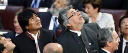 Cristina acható la pezuña y no rajó de chiripa. El ex Obispo no le tiene mucha fe al ex patrón, porque mira las alturas con cierto temor a revancha. Bueno el lo engañó al de arriba unas cuantas veces. El Evo esta como buen boliviano tranquilo. Bien dicen una fotografía equivale a mil palabras.
