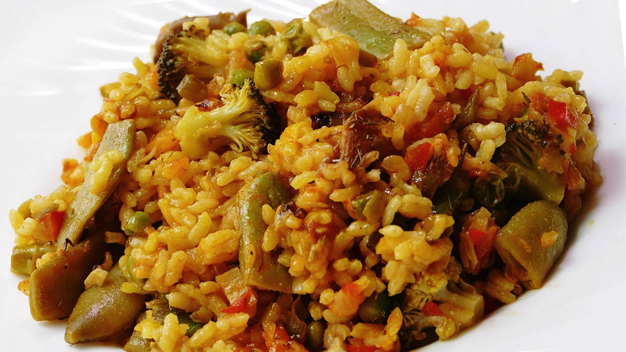 Arroz rojo con verduras