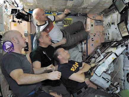 A través de su cuenta de Twitter, Weisman publicó una fotografía en la que se le puede ver observando el juego que decidirá al campeón de la Copa del mundo de Brasil 2014, junto con su compatriota, Alexander Gerstel, y el resto de la tripulación de la Expedición número 40 a la EEI.