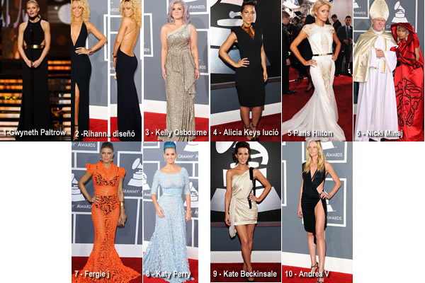 La moda se hizo presente en la entrega número 54 de los premios más importantes de la música. Este año los artistas hicieron su mayor esfuerzo por llamar la atención con atuendos extravagantes y peculiares peinados. Gwyneth Paltrow y Rihanna encabezan la lista de las mejor vestidas, mientras que Nicki Minaj y Katy Perry desentonaron y hacen parte de las peores.