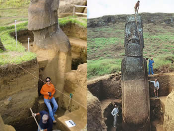 Todos los moai que estan de pie han sido erigidos recientemente, ya que los mismos habían sido derribados antes el siglo XVIII.