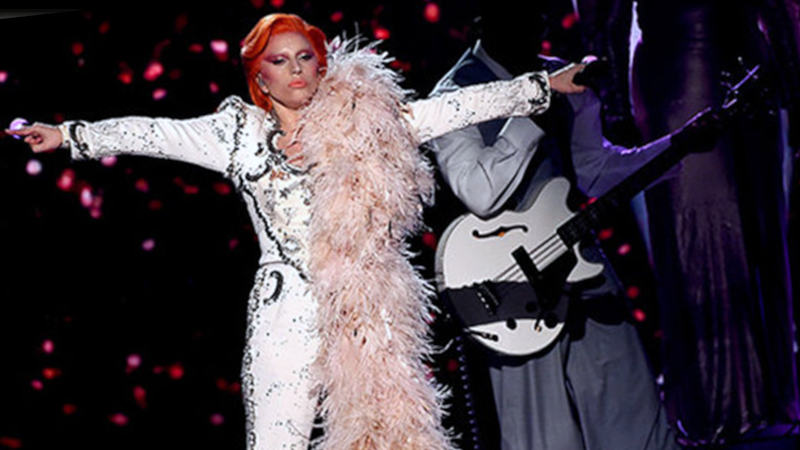 Con gran acierto, Lady Gaga quien, junto al músico Nile Rodgers y a una cuidada puesta en escena, realizó este trabajado homenaje de siete minutos en los que transita por nueve temas diferentes del genio: Space Oddity, Changes, Ziggy Stardust, Suffragette City, Rebel Rebel, Fashion, Fame, Let’s Dance y Heroes.